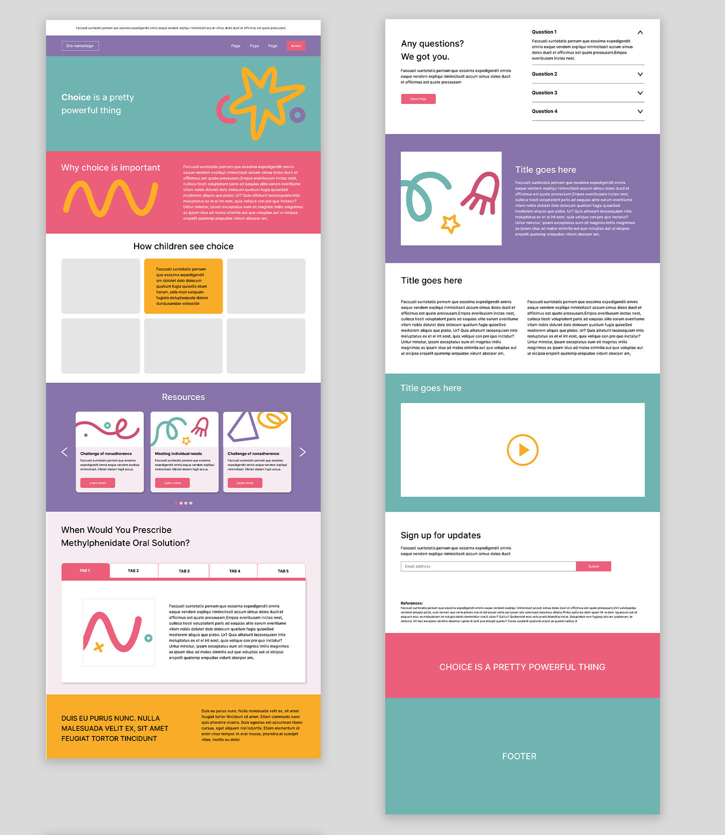 Created wireframes for a campaign website that would display the children's artwork alongside key information about ADHD and available medication options